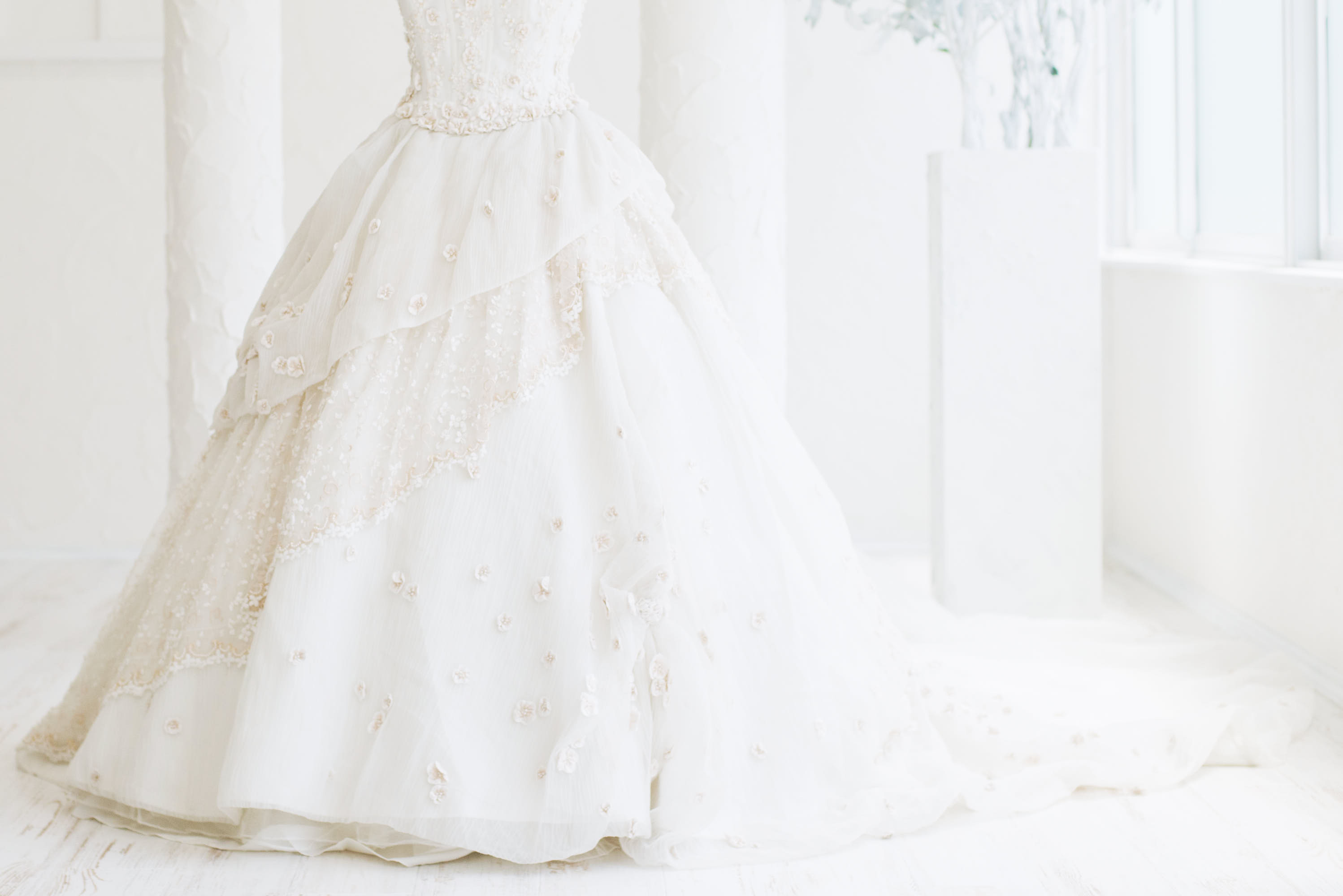 We offer a wide selection of rental wedding dresses and colored dresses, ranging from simple to luxurious styles.