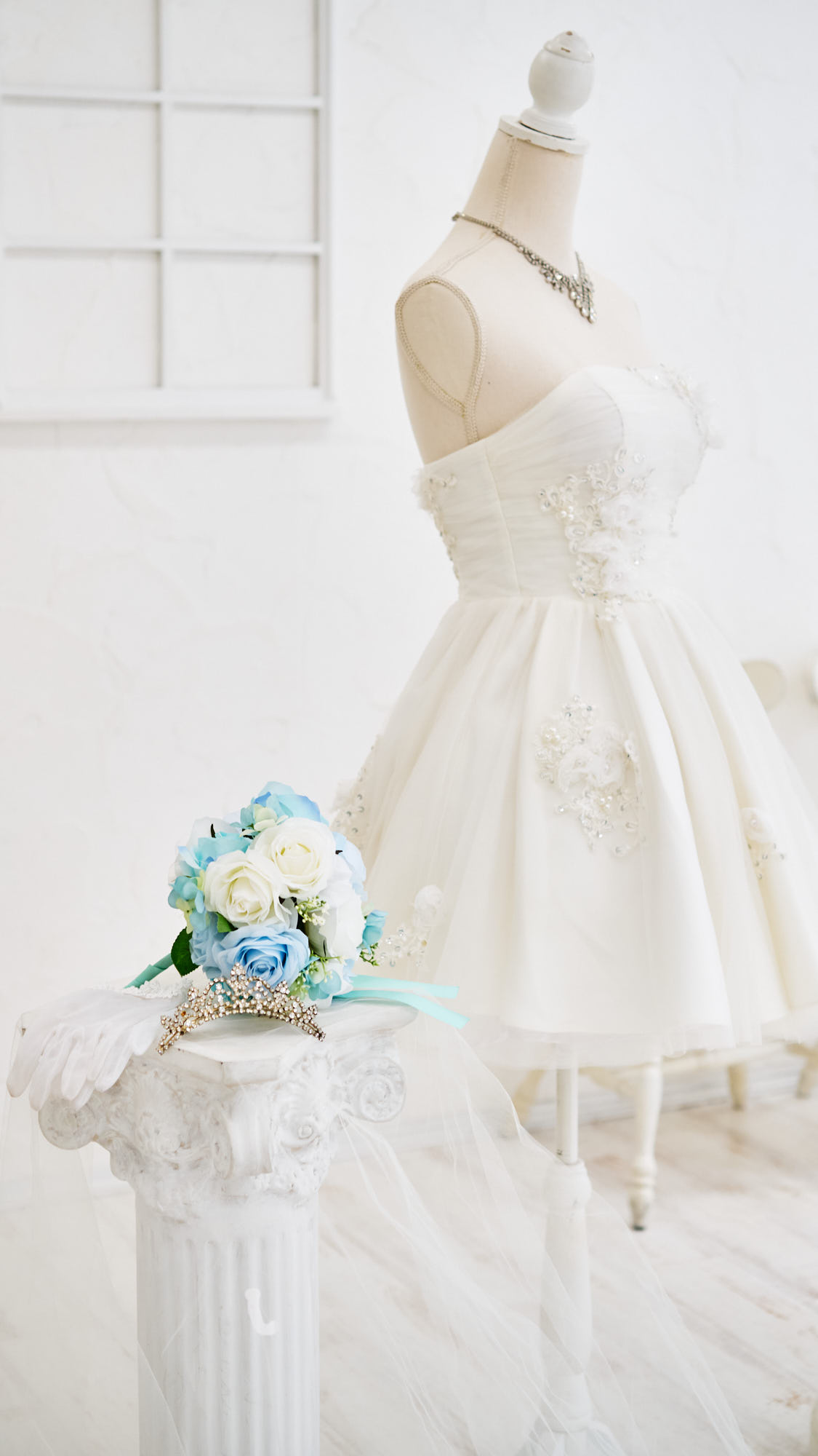 Dress itself Veil Bouquet Gloves Accessories(Necklace, Hair Accessories) Pannier(Excluding Mermaid Type Dresses) One of Each Item